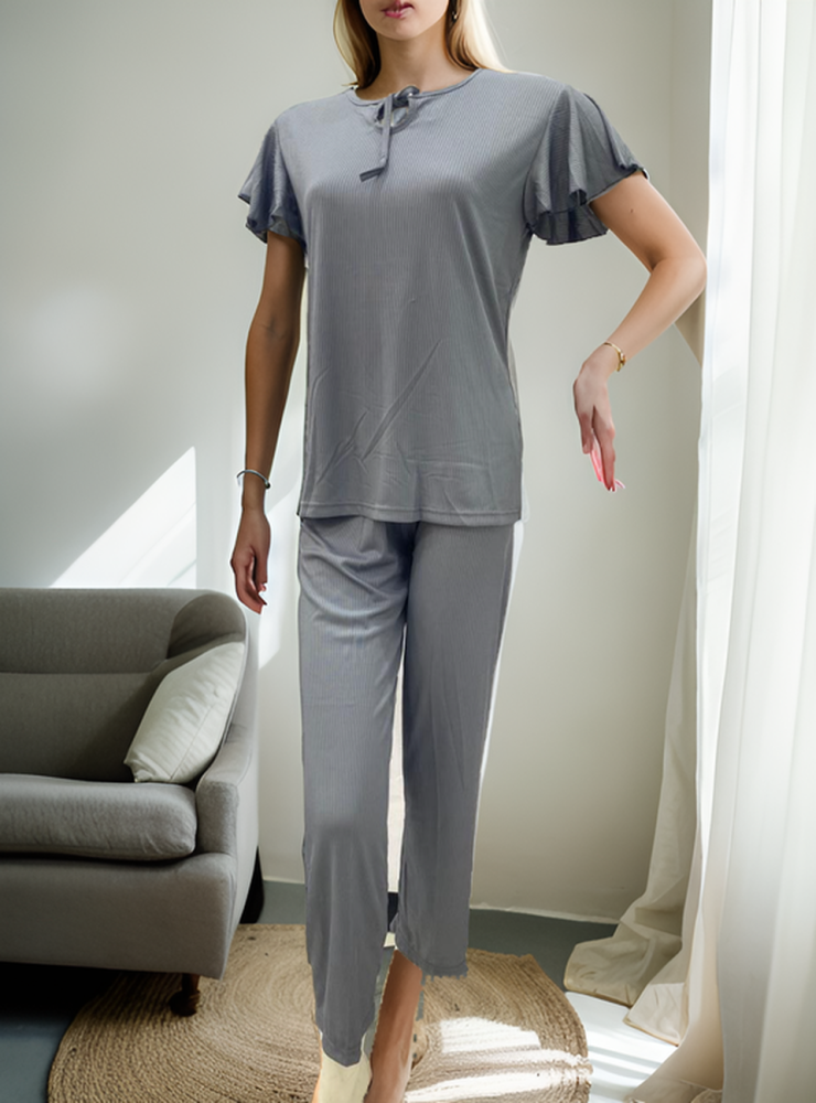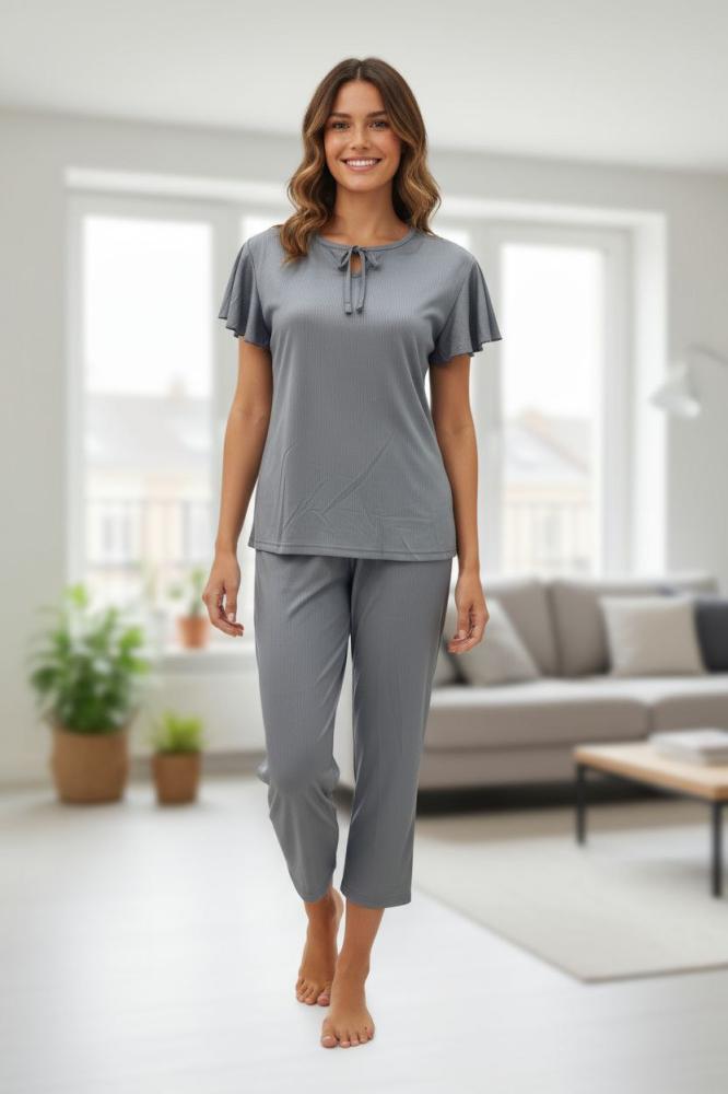 بجامة همسة رماد – هدوء يلبسك، ونعومة تلامسك
